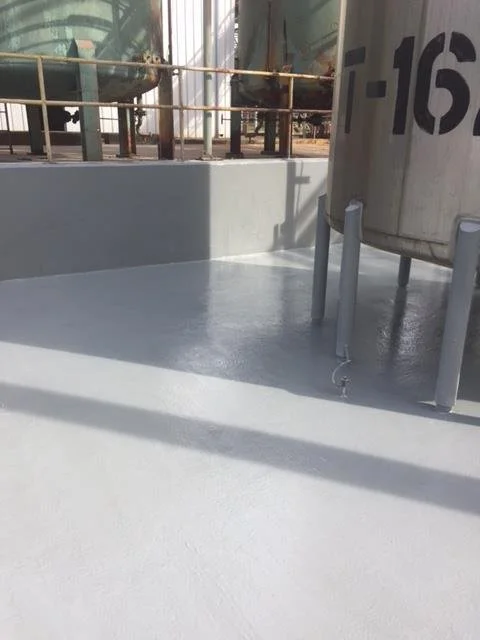 These protective coatings are designed for secondary containment structures to material/product vessels or work areas. The features of these coating systems include: chemical resistance, temperature resistance, and protection against permeation. We work with a wide array of systems and technologies like novolacs, vinyl esters, polyurethanes, etc. These material technologies provide different specific combinations of the aforementioned features. We are more than willing to consult with potential clients in order discern what materials are best suited to their use case.
